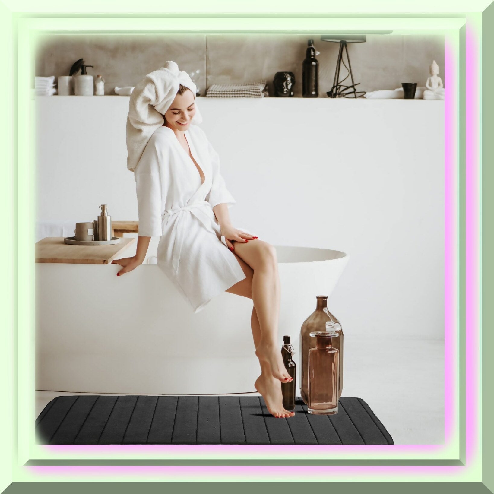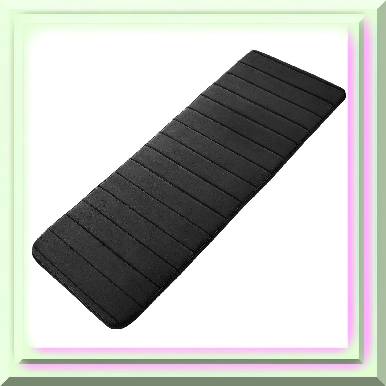 This Memory Foam Bath Mat features a microfiber coral fleece surface that quickly absorbs water and dries fast, helping to prevent mold. The luxurious memory foam provides a soft, comfortable surface for your feet, making it ideal for stepping out of the bathroom or bathtub. Crafted with soft microfiber coral fleece, memory foam, and a durable PVC backing, this mat offers both comfort and stability. Available in multiple sizes and colors, it suits various spaces such as bathrooms, kitchens, hallways, bathtub sides, and balconies. The 16" x 47" size is perfect for long, narrow areas, providing ample coverage. Its stylish design enhances any decor while offering a plush, cushioned feel underfoot. The mat is brand new and designed for multipurpose use, combining absorbency, comfort, and durability in one practical accessory. Please note slight measurement variances and color differences due to lighting.