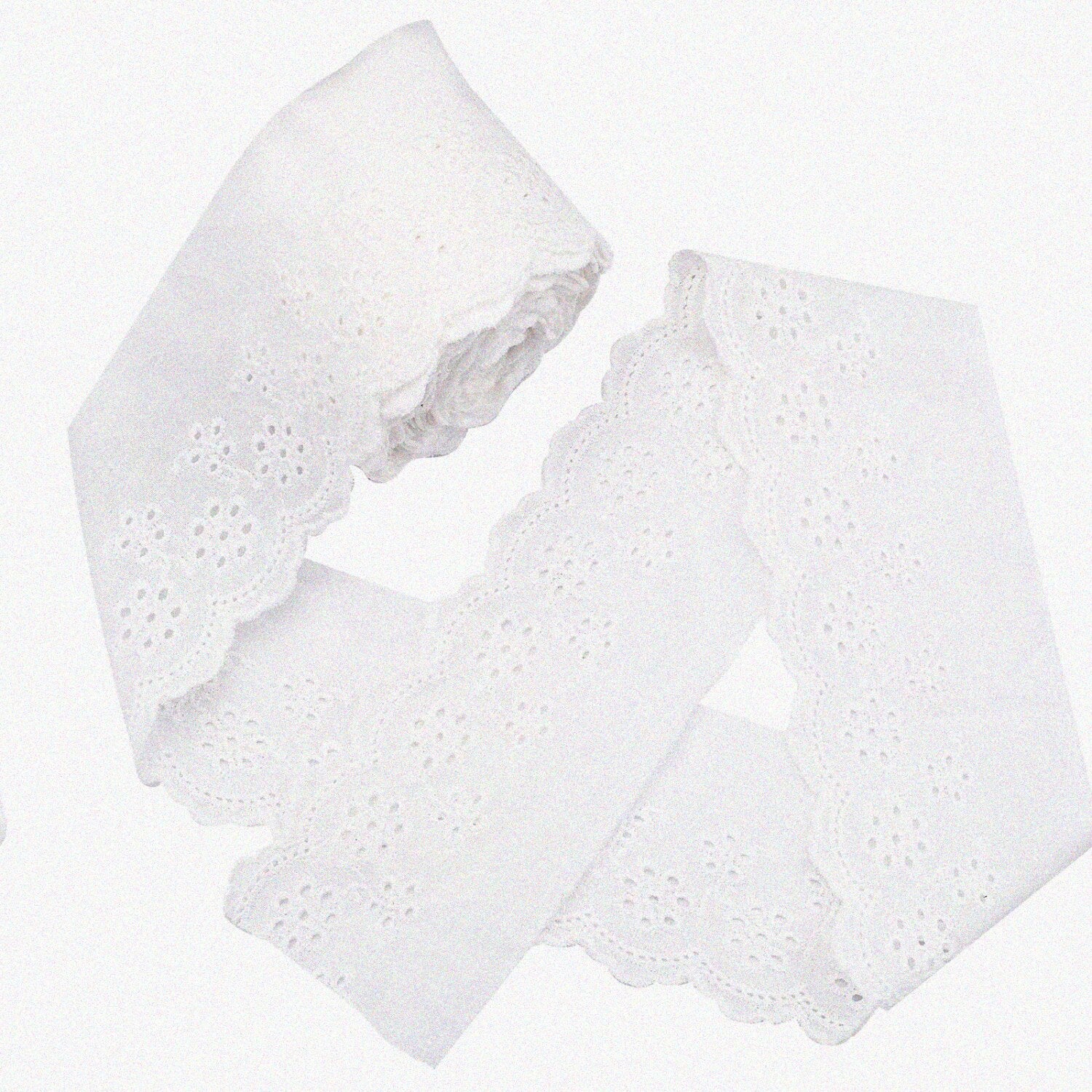 This cotton lace trim measures approximately 7.5 yards in length and 3-1/8 inches (80mm) in width. Crafted from cotton with a fabric backing, it is friendly, colorfast, and durable. The trim features a hollow flower pattern with a delicate hollow heart design and a beautiful floral motif, adding a touch of simple elegance to any project. Its long length allows for versatile use in various DIY sewing and craft projects, and it can be cut to any desired length. Ideal for embellishing embroidery fabric, curtains, tablecloths, slipcovers, bridal accessories, clothing, and other home decor items. Suitable for crafts, dress decoration, vintage sewing, invitation cards, paper crafts, hair ties, and home furnishings. This lace trim provides a charming and versatile decorative element to enhance your creative projects.