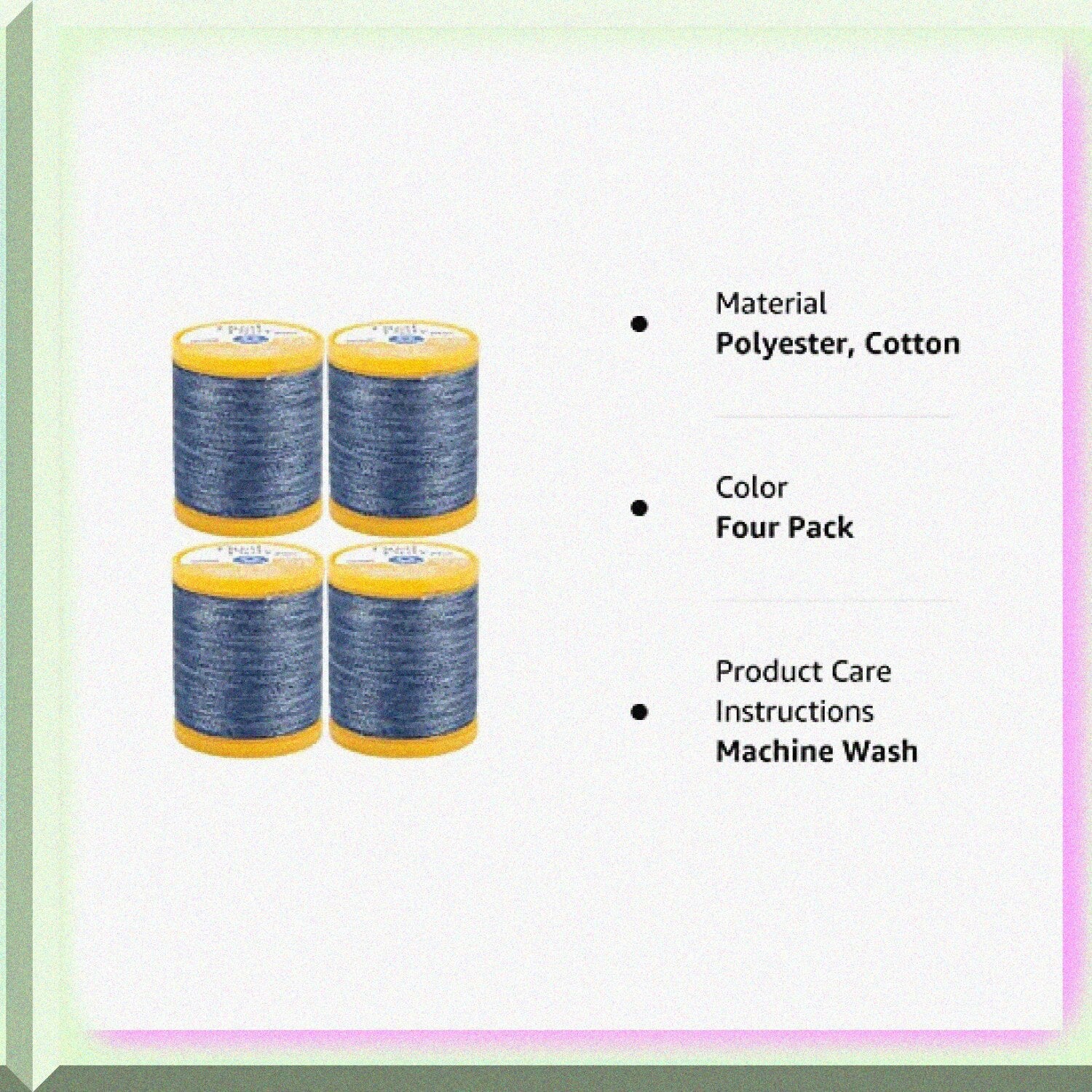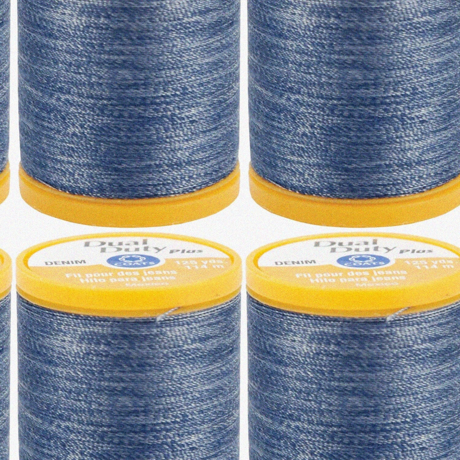 DenimMaster Dual Duty Thread comes in a 125-yard spool in classic blue. Designed for sewing and mending jeans, this all-purpose weight thread is made from cotton-covered polyester, ensuring durability and a seamless blend with denim fabric. The thread's color closely matches traditional denim shades, providing a professional finish to your projects. The new Trap spool keeps the thread neatly wound and secure, preventing tangles during use. Each package contains one spool, offering ample length for various sewing tasks. Made in the USA, this denim thread is suitable for a range of denim-related sewing and repair needs, delivering reliable performance and a consistent color match.