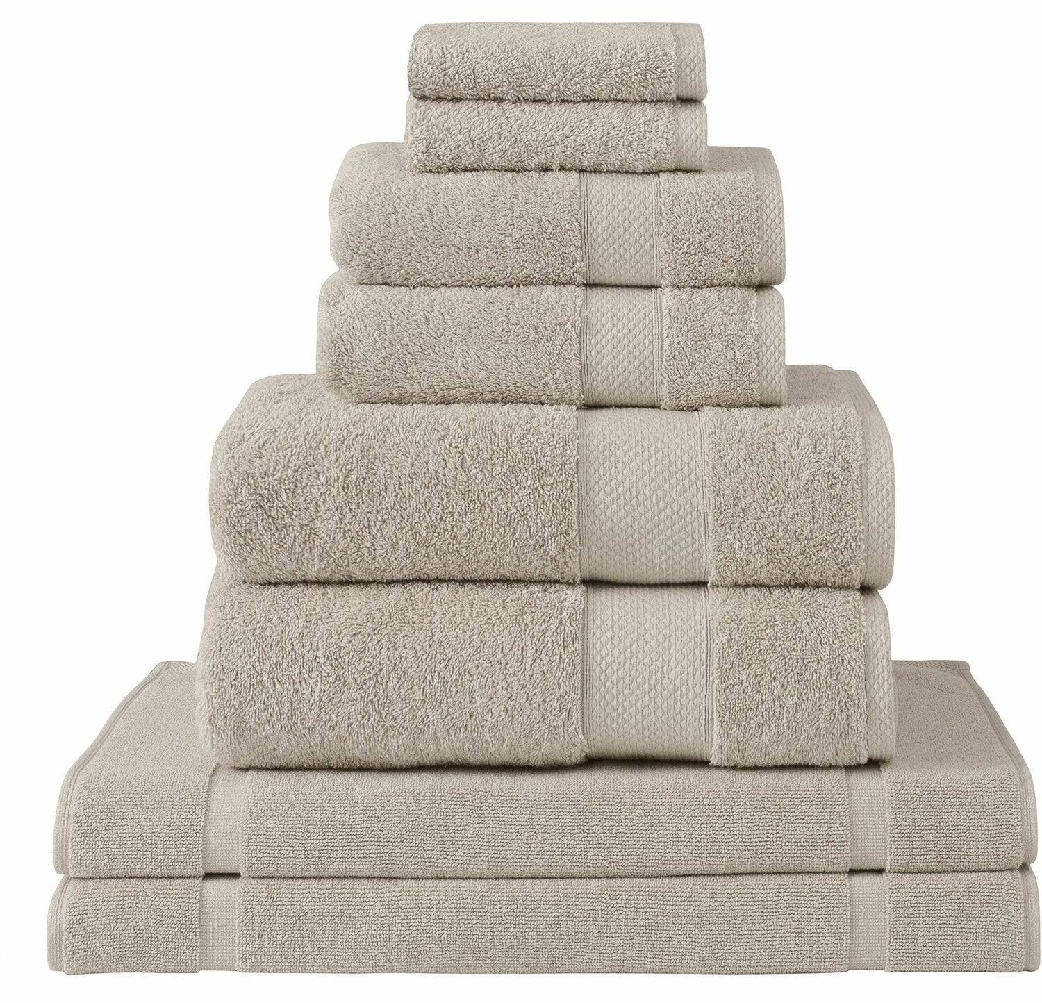 This 8-piece towel set offers a luxurious addition to any bathroom, crafted from 100% Turkish cotton. The set includes two large bath towels measuring 30 by 54 inches, two hand towels at 16 by 27 inches, two washcloths of 12 by 12 inches, and two bath mats. The plush towels and washcloths provide a soft, absorbent surface for drying your body, face, and hands. The high-quality cotton fibers ensure maximum absorbency and quick drying between uses. Easy to care for, all pieces can be machine washed in warm or cold water, with no bleach or fabric softener needed to maintain their softness and durability. Made from premium Turkish cotton, known for its long-lasting softness and durability, this set brings an elegant, spa-like feel to your bathroom. The natural fibers grow longer and more narrow, resulting in a finer, softer texture and more threads per square inch.