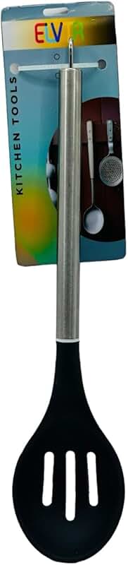 This kitchen utensil set includes a slotted turner, slotted spoon, serving spoon, and skimmer. Made from flexible nylon, these tools are BPA free and suitable for use with non-stick cookware. They are dishwasher safe for easy cleaning.