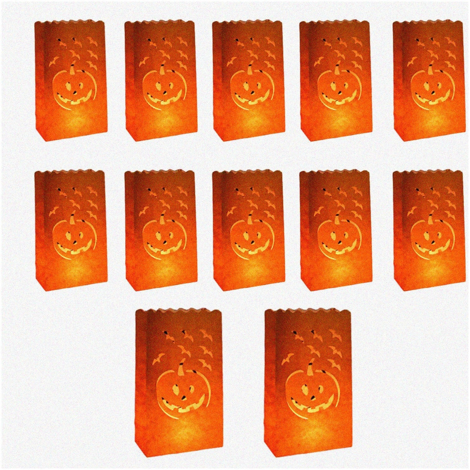Create a captivating atmosphere with this set of 12 vibrant orange pumpkin paper lantern bags. Each lantern measures 15 x 9 x 24cm, offering a perfect balance of elegance and practicality. Made from flame-resistant paper, these lanterns are designed for safety and durability. They can be illuminated using tea lights, candles, battery-operated, or flameless LED lights, allowing you to customize the ambiance for any occasion. Ideal for parties, events, weddings, dinners, or celebrations, these lanterns effortlessly elevate the decor and create a warm, inviting glow. Their versatile design makes them suitable for various settings, transforming any space into a charming wonderland. Easy to assemble, these lanterns combine style with safety, ensuring a worry-free experience. Crafted with attention to detail, they are eco-friendly and built to last, making them a reliable choice for enhancing your decor and creating unforgettable moments.